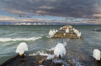 조식 후, [알혼섬 북부빙사투어] *우아직 사륜구동으로 투어 : 후지르 마을 출발 → 사라예스키 해변을 따라서 [※우아직은 비포장 전용 러시아산 차량이지만, 편의시설이 부족한 차량입니다. 양해 부탁드립니다. - 안전벨트 없습니다. - 차량 내 이동시 먼지가 많이 발생합니다. (마스크 준비) ※우아직은 공간이 협소하며, 8인승입니다.] ▶뉴르간스키: 사자섬과 움직이는 악어바위